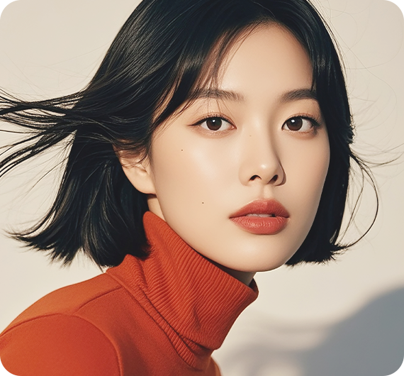 얼굴형입니다. 이로써 젊고 활기찬 이미지를 연출할 수 있습니다.