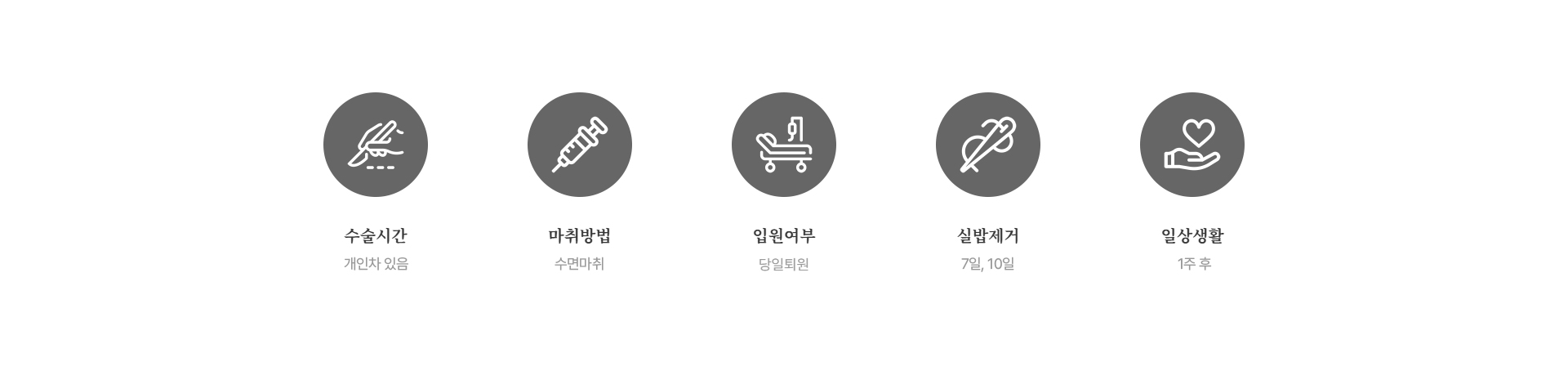 수술 다음날부터 6개월까지 기간별로 내원하여 항생제 주사 및 소독, 실밥제거등 애프터 케어를 진행합니다.