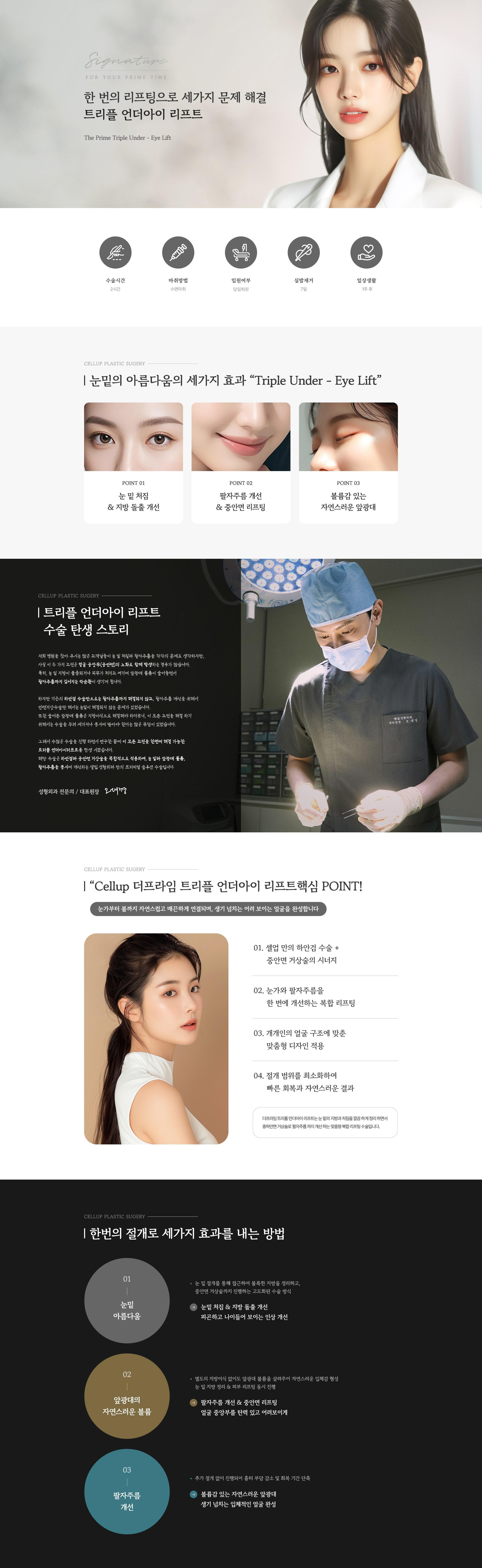 주름라인을 따라 디자인합니다.흉터가 적게 생기는 주름라인을 찾아내 절개합니다.