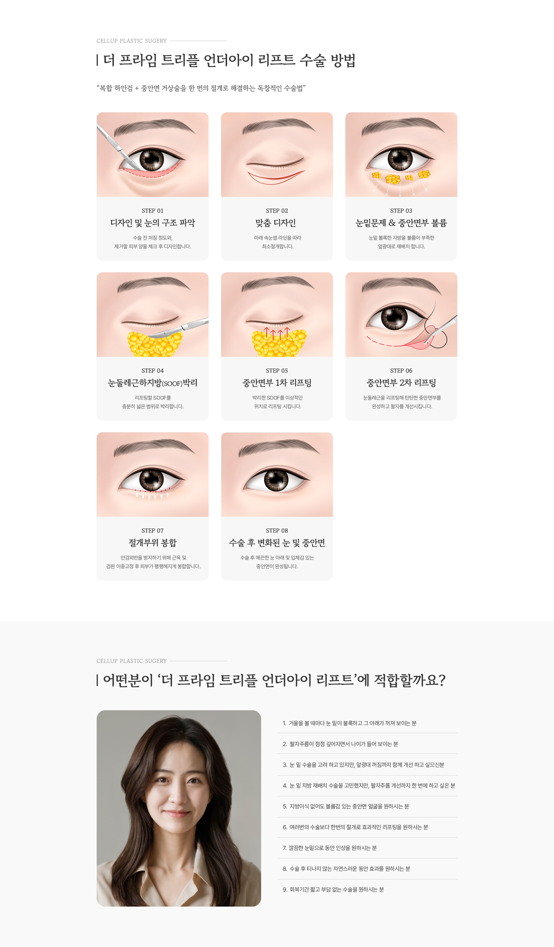 1단계: 이중봉합절개 부위를 꼼꼼하게 봉합하여 절개선의 흔적이 남지 않도록 이중 봉합을 진행합니다.