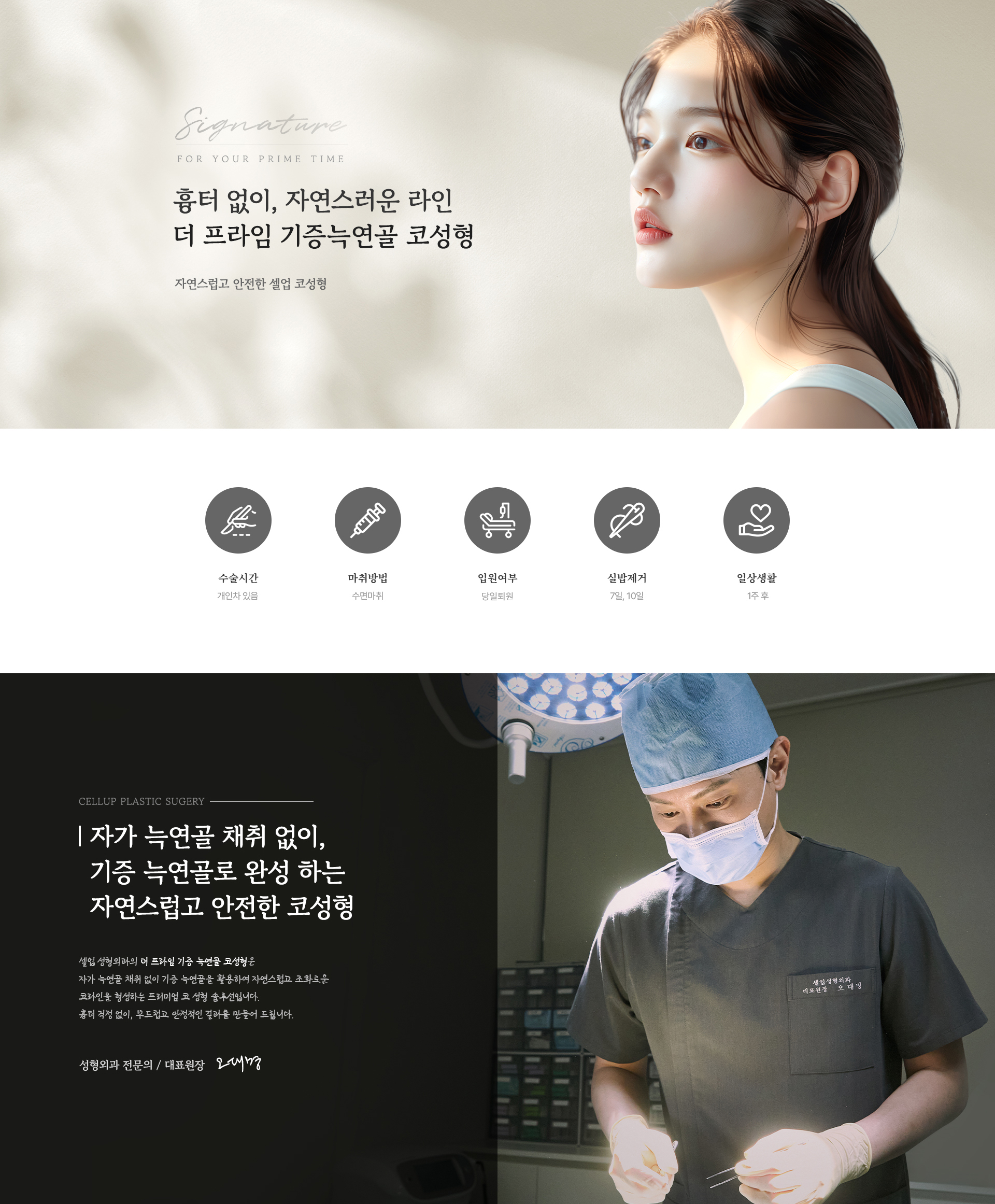 1단계: 이중봉합절개 부위를 꼼꼼하게 봉합하여 절개선의 흔적이 남지 않도록 이중 봉합을 진행합니다.