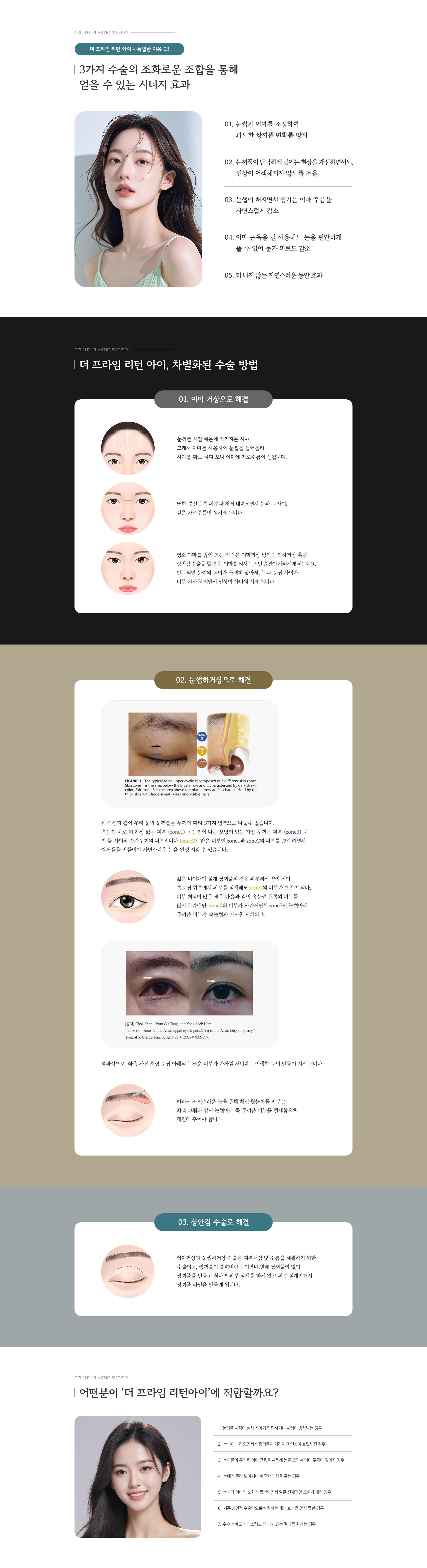 흉터가 적게 생기는 주름라인을 찾아내 절개합니다.