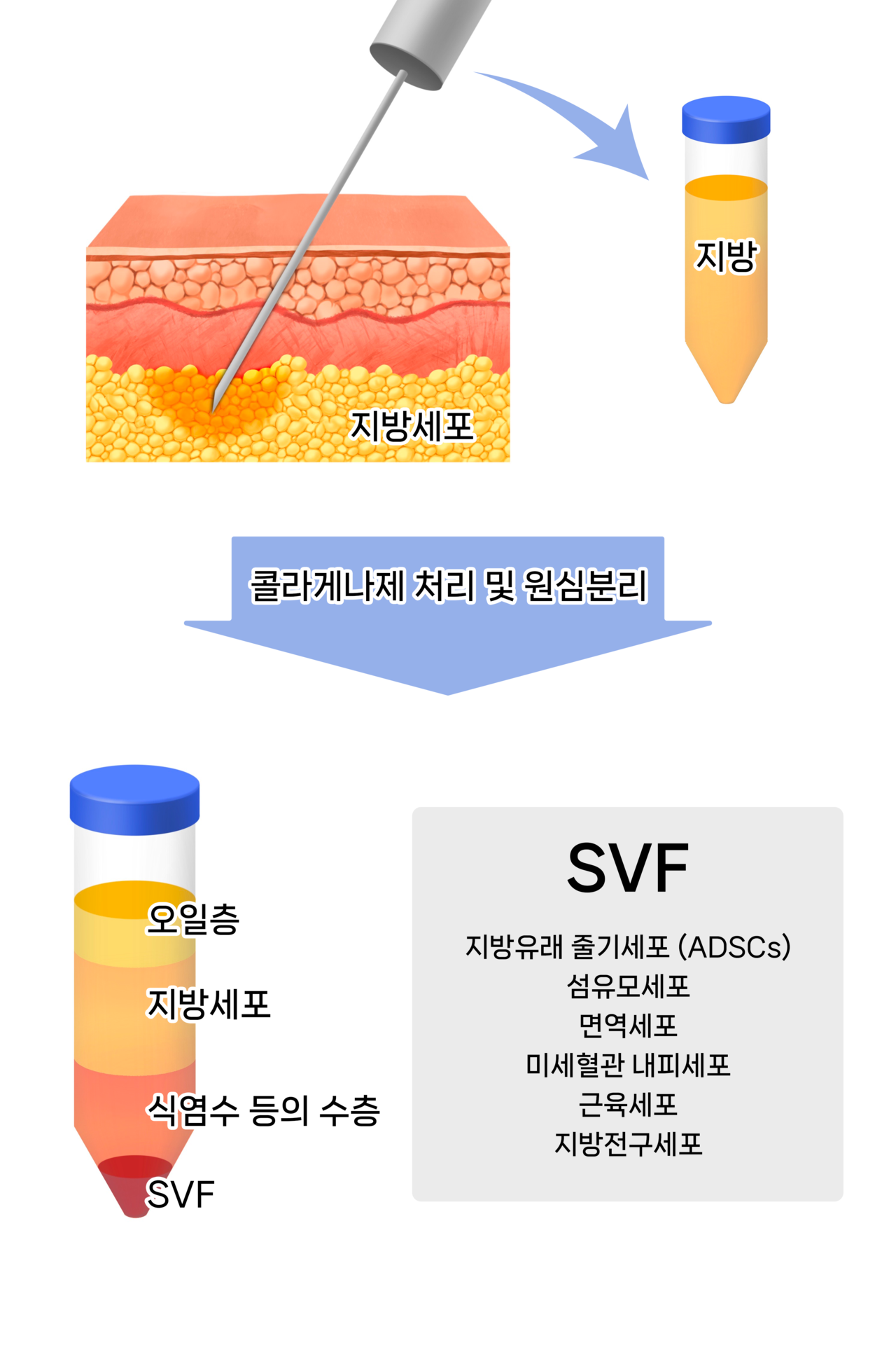 지방에서 분리시킨 줄기세포와 순수지방세포를 조합해 생착률 높은 지방을 만듭니다.