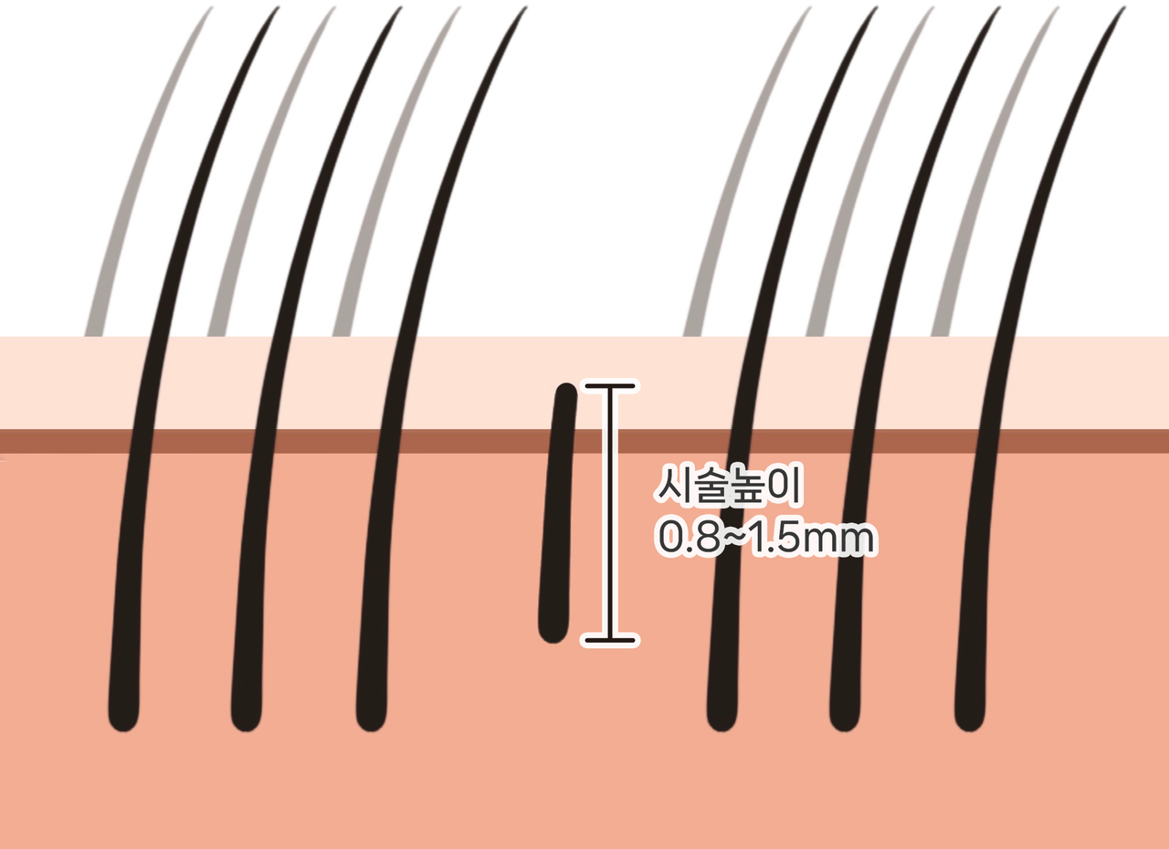 시술 시 니들의 깊이가 모낭에 다다르지 않기 때문에 기존 헤어에 전혀 영향을 주지 않습니다. 단 시술자의 시술이 능숙하지 못해 니들의 깊이 조절이 잘못될 경우 점의 사이즈가 커지거나 번져서 얼룩처럼 보이거나 부자연스럽게 보일 수 있으니 주의해야 합니다.